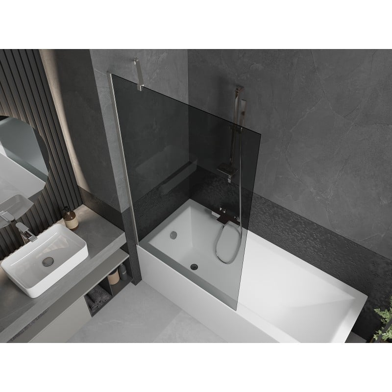 Technické údaje: Šířka: 100 cm Výška: 150 cm Typ: 1-křídlé Montáž: Univerzální Typ: Pevné Typ skla: Tvrzené Barva skla: Grafit Tloušťka skla: 6 mm Povrchová úprava: Kartáčovaný nikl Povlak pro snadné čištění Vyrovnání nerovností stěn