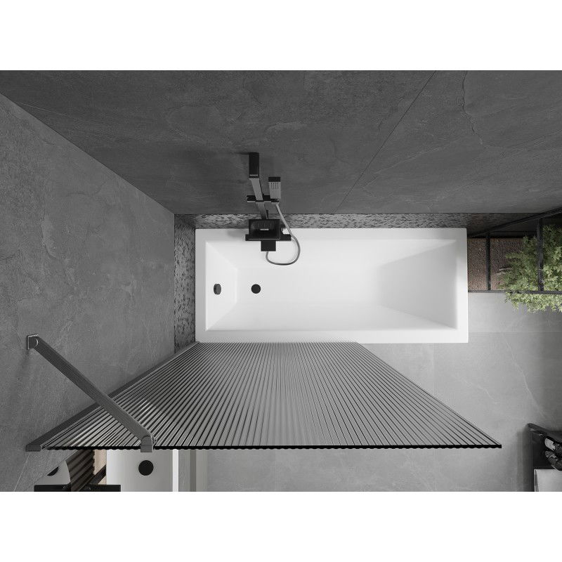 Technické údaje: Šířka: 100 cm Výška: 150 cm Typ: 1-křídlé Montáž: Univerzální Typ: Pevné Typ skla: Tvrzené Barva skla: Pruhy Tloušťka skla: 6 mm Povrchová úprava: Kartáčovaná šedá barva Povlak pro snadné čištění Vyrovnání nerovností stěn