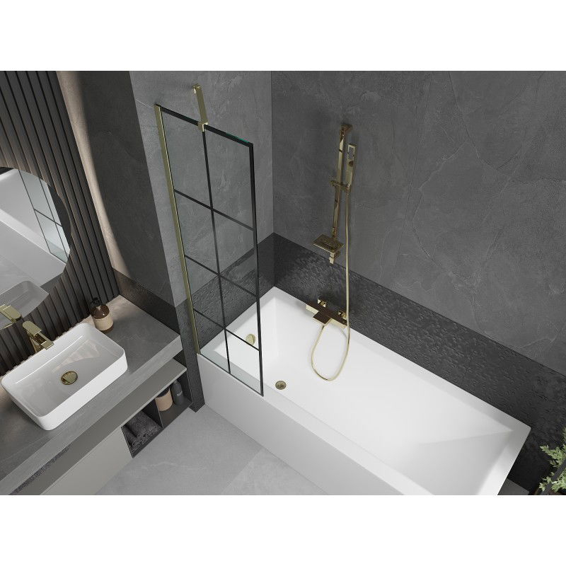 Vanová zástěna Mexen Next s jedním křídlem 50 x 150 cm, černá kostkovaná, kartáčované zlato - 895-050-000-00-77-55
