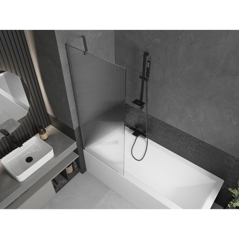 Technické údaje: Šířka: 70 cm Výška: 150 cm Typ: 1-křídlé Montáž: Univerzální Typ: Pevné Typ skla: Tvrzené Barva skla: Pruhy Tloušťka skla: 6 mm Povrchová úprava: Kartáčovaná šedá barva Povlak pro snadné čištění Vyrovnání nerovností stěn