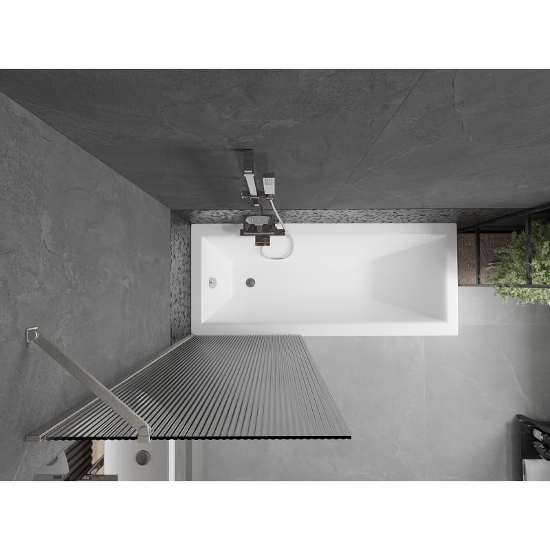 Technické údaje: Šířka: 70 cm Výška: 150 cm Typ: 1-křídlé Montáž: Univerzální Typ: Pevné Typ skla: Tvrzené Barva skla: Pruhy Tloušťka skla: 6 mm Povrchová úprava: Kartáčovaný nikl Povlak pro snadné čištění Vyrovnání nerovností stěn
