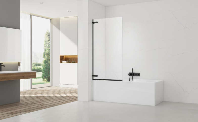 Vaňová zástena o rozmere 150x80 cm. Pántový systém otvárania. Profil v čiernom matnom prevedení, výplň je z číreho skla. Zástena je zložená z 1 dielov.