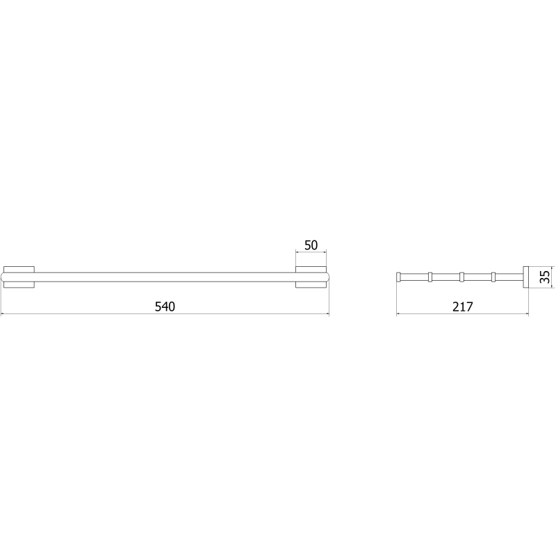 Špecifikácia produktu: Materiál: Kov Povrchová úprava: Kartáčovaná pištoľovo šedá Šírka: 54 cm Výška: 3,5 cm Vzdialenosť od steny: 21,7 cm