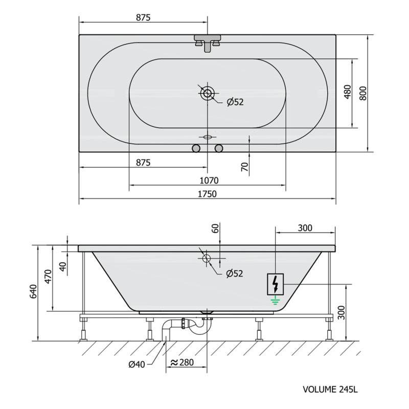 VIVA B hydromasážna vaňa, 175x80x47cm, Active Hydro, chróm 57286