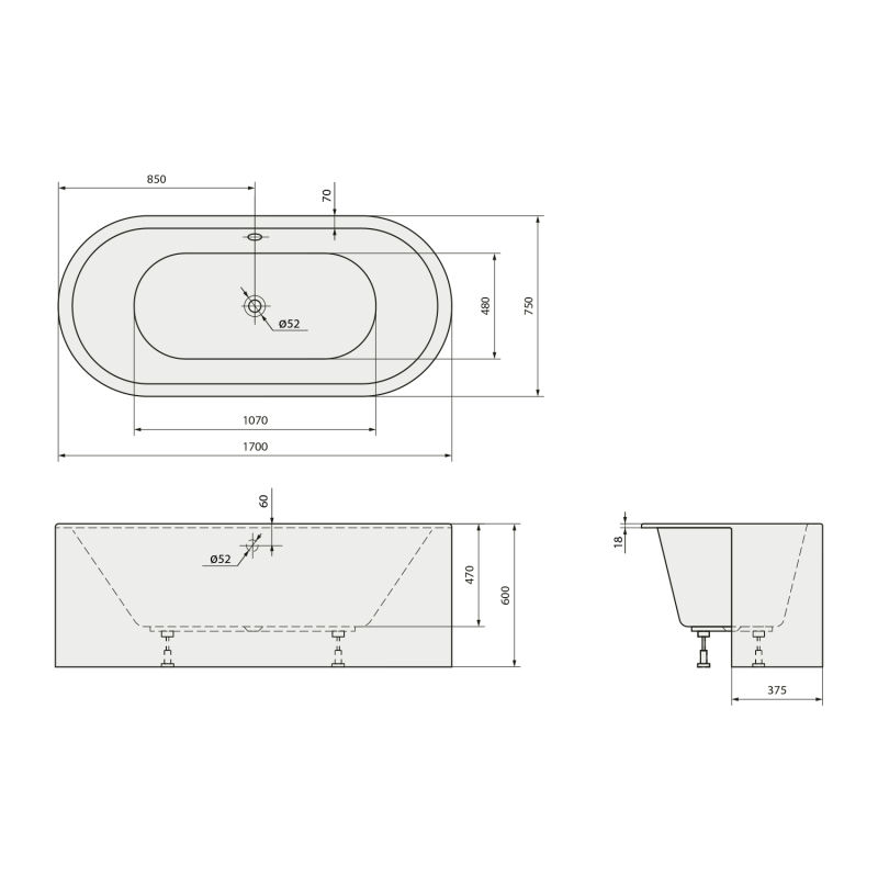VIVA C MONOLITH oválna polozápustná vaňa 170x75x60cm, biela 60565