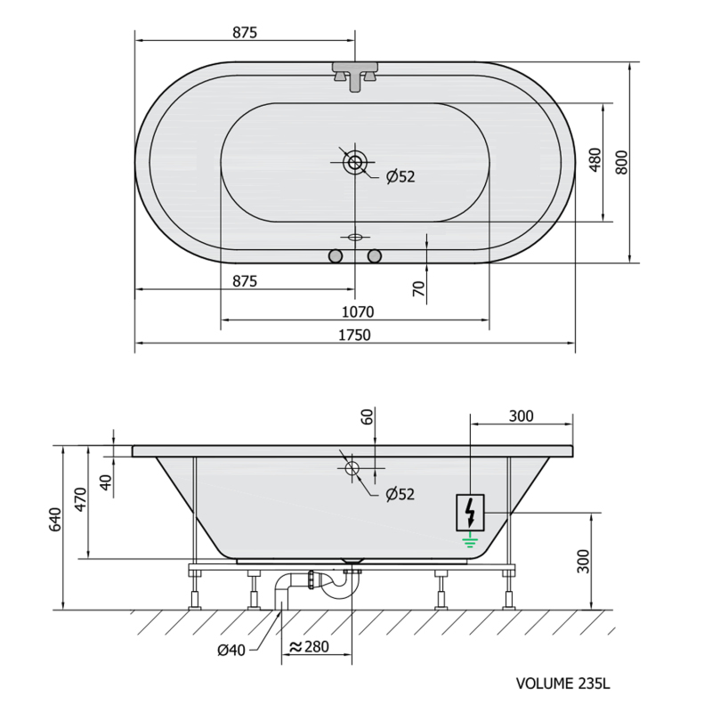 VIVA O hydromasážna vaňa, 175x80x47cm, Highline Hydro-Air, chróm 57297