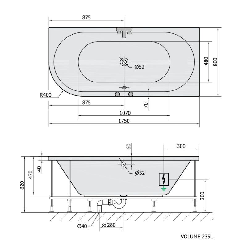 VIVA R hydromasážna vaňa, 175x80x47cm, Active Hydro, chróm 57280