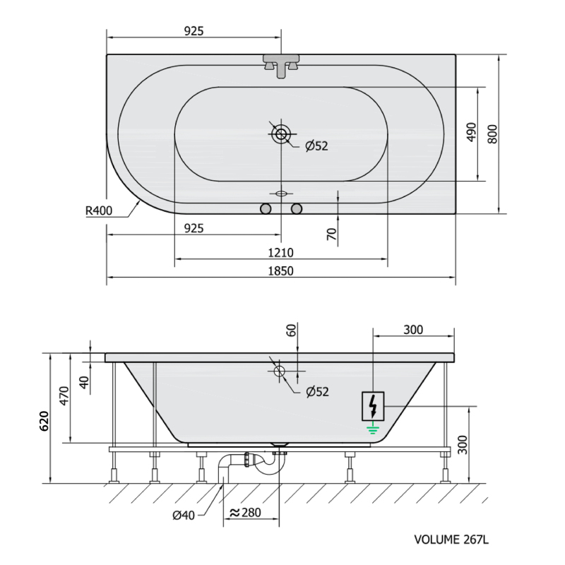 VIVA R hydromasážna vaňa, 185x80x47cm, Highline Hydro-Air, chróm 57309