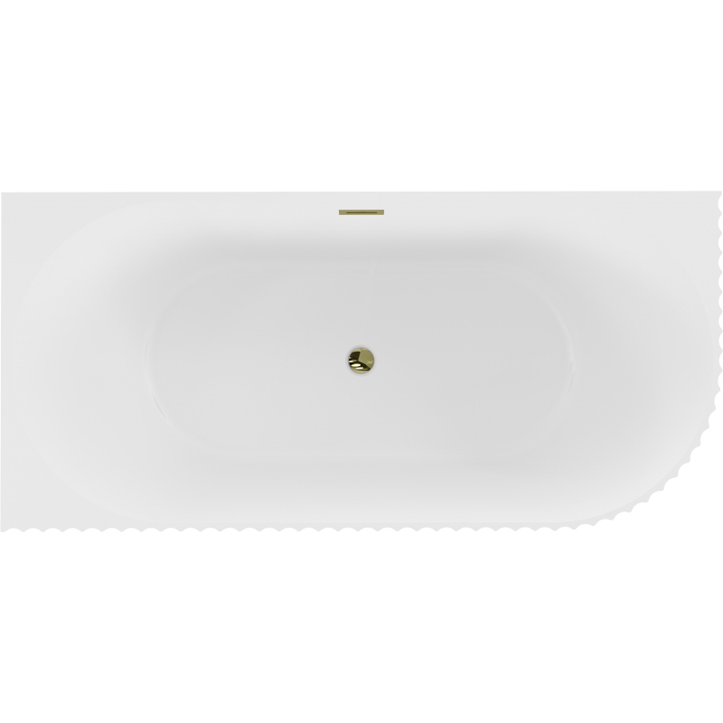 Špecifikácia produktu: Rozmer: 150 x 75 cm Výška: 58 cm Hĺbka: 45,5 cm Montáž: Rohová, Ľavá Materiál: Sanitárny akrylát Farba: Matná biela Povrchová úprava: Zlatá Štruktúra: Drážkovaná Otvor pre prepad: Áno Otvor pre batériu: Nie Sifón a zátka