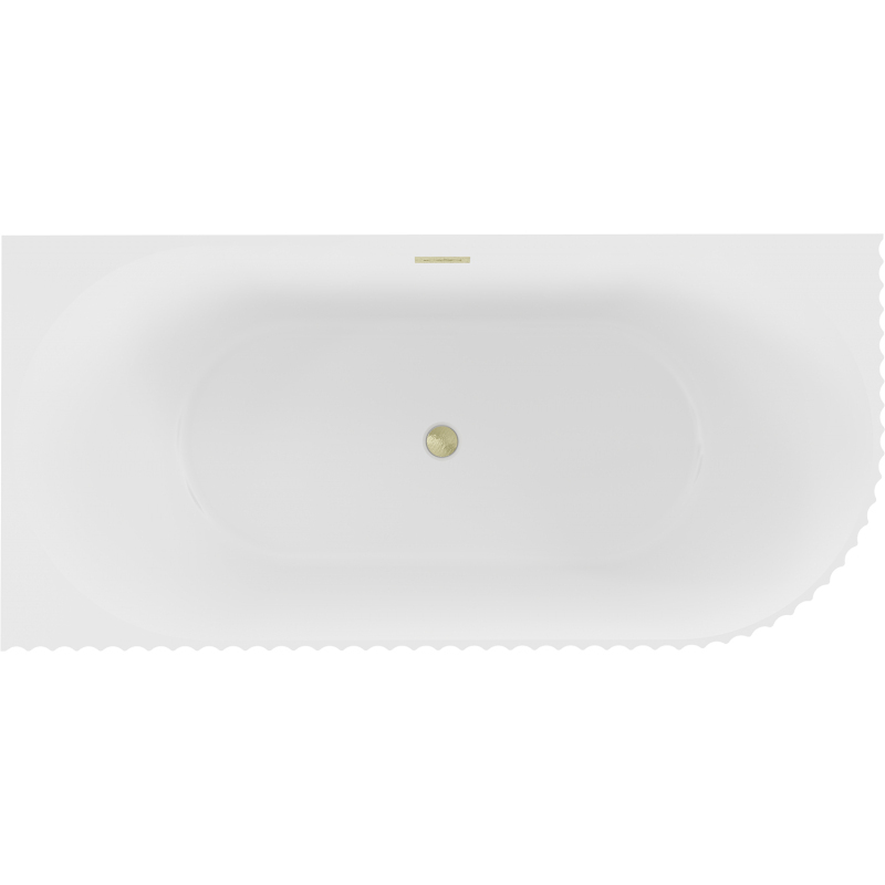 Voľne stojaca rohová vaňa Mexen Gia s drážkovaným prepadom ľavá 150 x 75 cm, matná biela, prepad kartáčovaný zlatý - 52701507501L-55