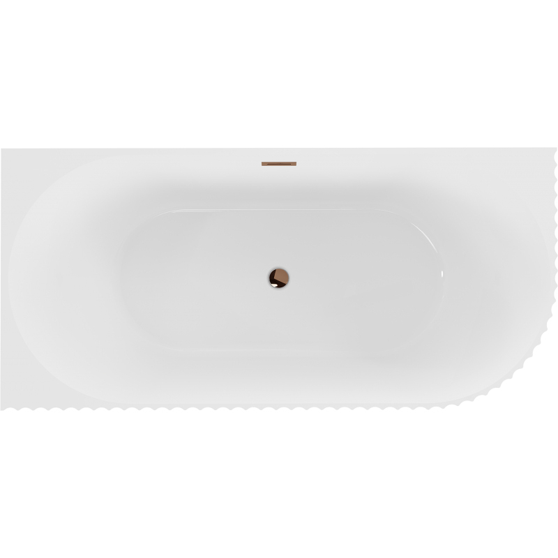 Voľne stojaca rohová vaňa Mexen Gia s drážkovaným prepadom ľavá 170 x 80 cm, lesklá biela, ružovo-zlatý prepad - 52701708000L-60