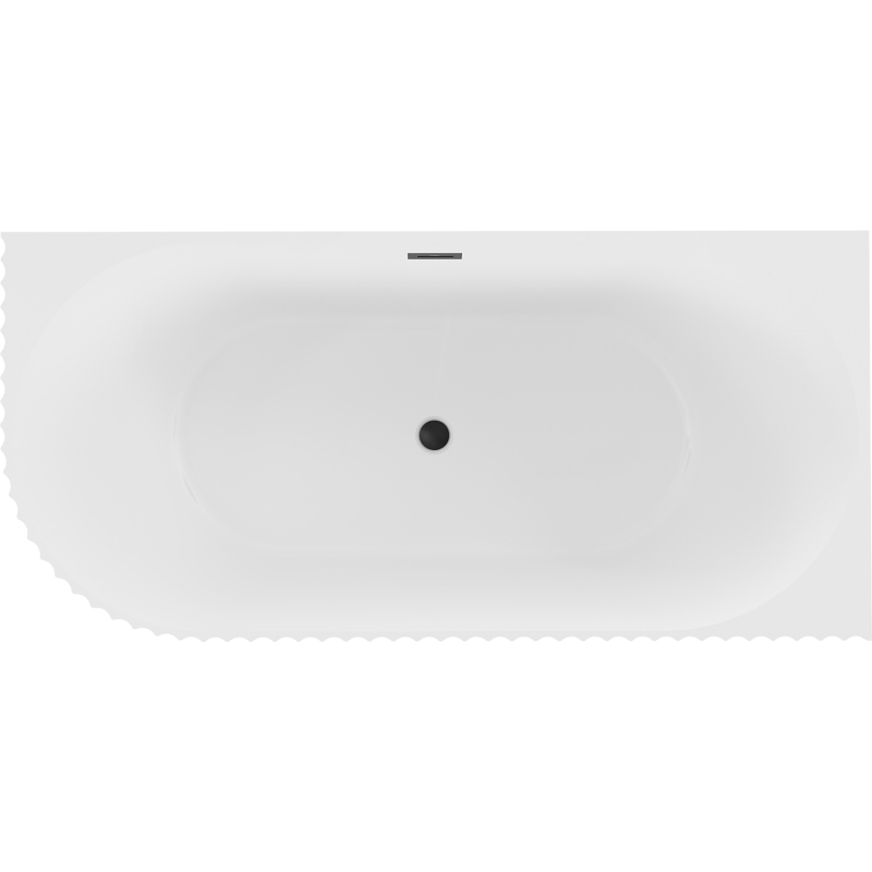 Špecifikácia produktu: Rozmer: 150 x 75 cm Výška: 58 cm Hĺbka: 45,5 cm Montáž: Rohová, Pravá Materiál: Sanitárny akrylát Farba: Matná biela Povrchová úprava: Čierna Štruktúra: Drážkovaná Otvor pre prepad: Áno Otvor pre batériu: Nie Sifón a zátka batériu a UV žiarenie