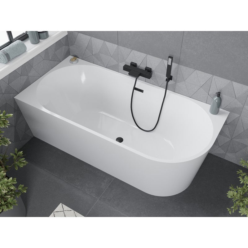 Voľne stojaca rohová vaňa Mexen Mia ľavá 160 x 80 cm, biela, čierny prepad - 52691608000L-70