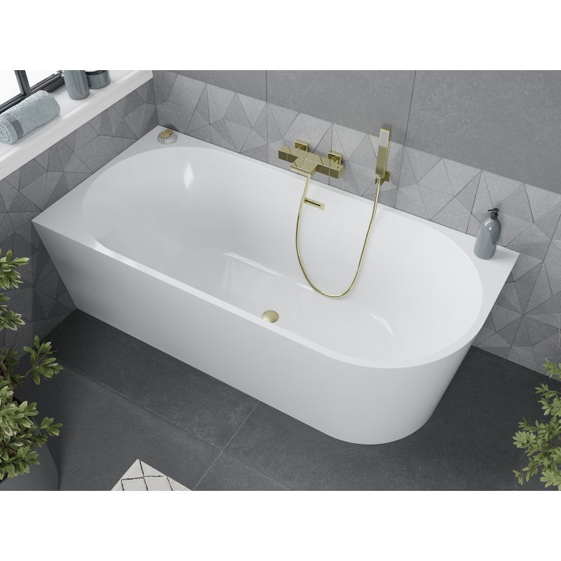 Voľne stojaca rohová vaňa Mexen Mia ľavá 160 x 80 cm, biela, prepad kartáčovaný zlatý - 52691608000L-55