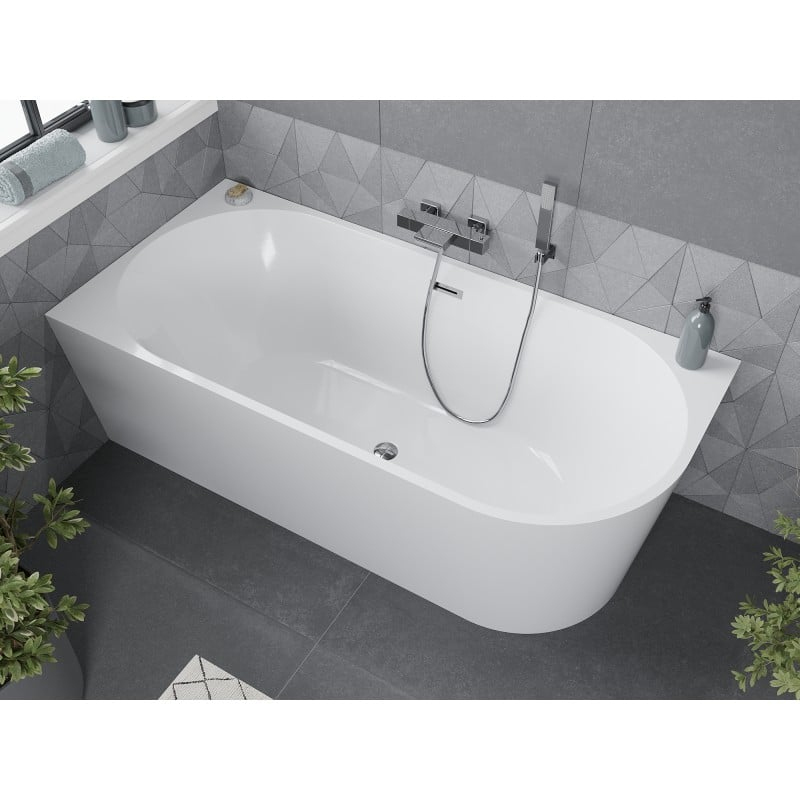 Špecifikácia produktu: Rozmer: 170 x 80 cm Výška: 58 cm Hĺbka: 45 cm Montáž: Rohová, Ľavá Materiál: Sanitárny akrylát Farba: Biela Povrchová úprava: Chróm Otvor pre prepad: Áno Otvor pre batériu: Nie Sifón a zátka click-clack sú súčasťou balenia Odolné voči