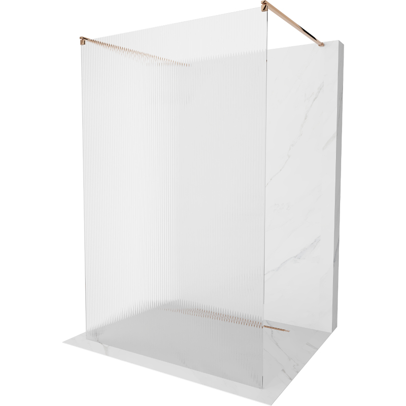 Technické údaje: Šírka: 100 cm Výška: 200 cm Montáž: Univerzálna Farba skla: Pruhované Povrchová úprava: Ružové zlato Typ skla: Tvrdené Hrúbka skla: 8 mm Profil: Hliník Konzola: Nerezová oceľ Max. dĺžka konzoly: 150 cm Konzolu je možné skrátiť Povrchová úprava pre ľahké čistenie Vyrovnáva nerovnosti steny Možnosť montáže na sprchovú vaničku alebo dlaždice