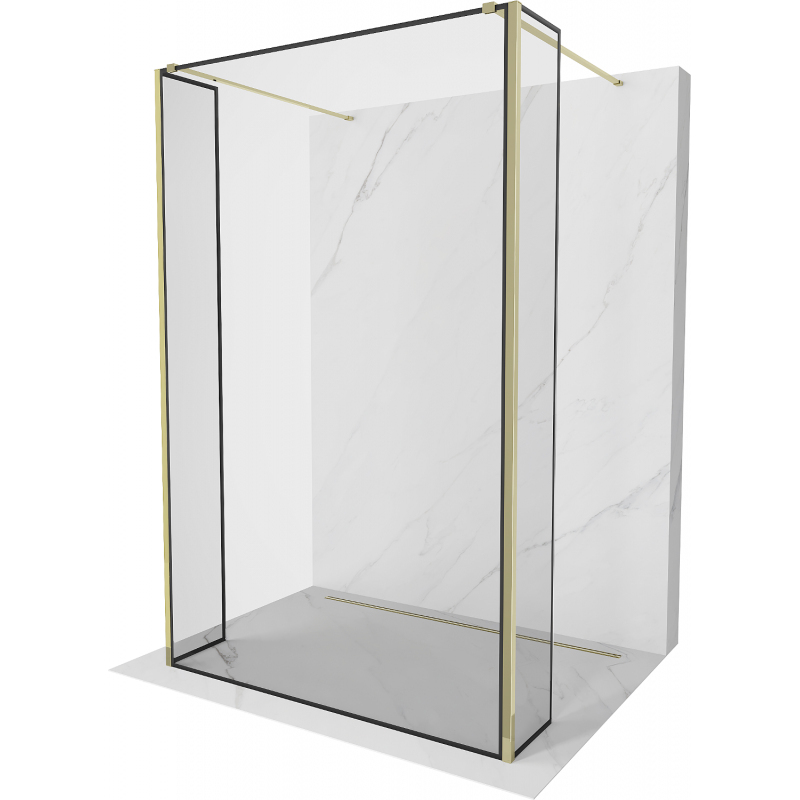 Špecifikácia produktu: Šírka: 90x30x30 cm (stena X - 90 cm, stena Y - 30 cm) Výška: 200 cm Montáž: Univerzálna Farba skla: Čierny rám Povrchová úprava: Zlatá Typ skla: Tvrdené Hrúbka skla: 8 mm Profil: Hliník Konzola. dĺžka konzoly: 150 cm Konzolu je možné skrátiť Povrchová úprava pre ľahké čistenie Vyrovnanie nerovností steny Možnosť montáže na sprchovú vaničku alebo obklady
