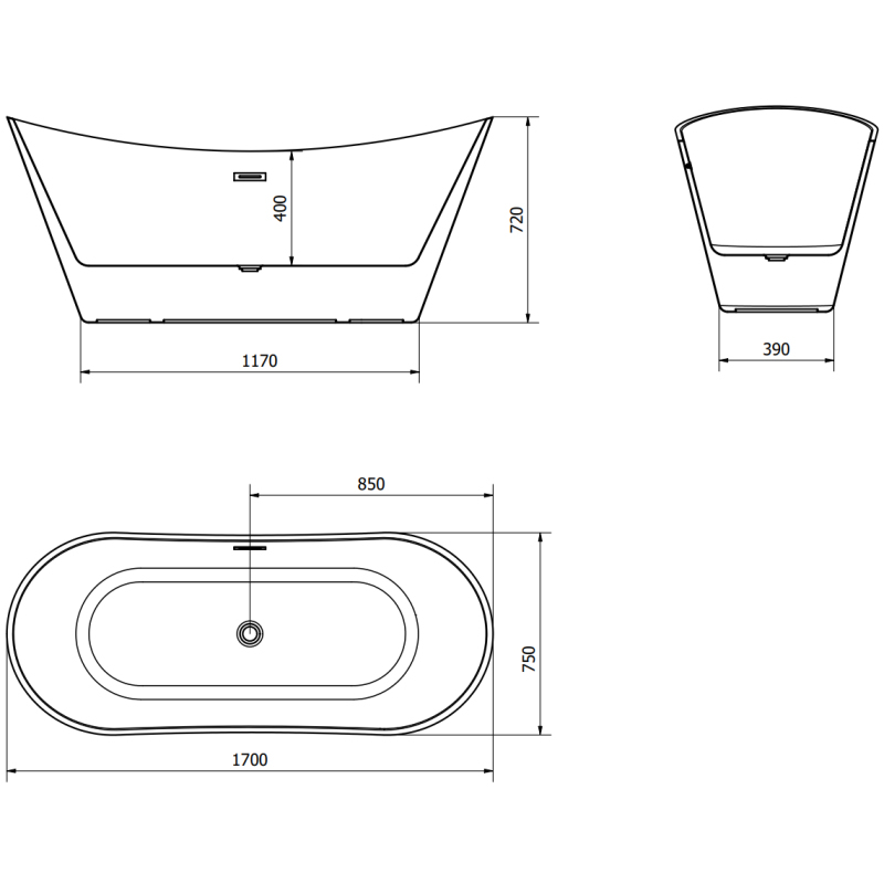 Špecifikácia produktu: Rozmery: 170 x 75 cm Výška: 72 cm Hĺbka: 40 cm Inštalácia: Voľne stojaci Materiál: Sanitárny akrylát Farba: Biela/Čierna Povrchová úprava: Kartáčované zlato Otvor pre prepad: Áno Otvor pre batériu: Nie Sifón a zátka click-clack sú súčasťou balenia