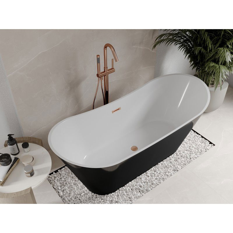 Voľne stojaca vaňa Mexen Celia 170 x 75 cm, biela/čierna, prepad z kartáčovanej medi - 52331707575-65