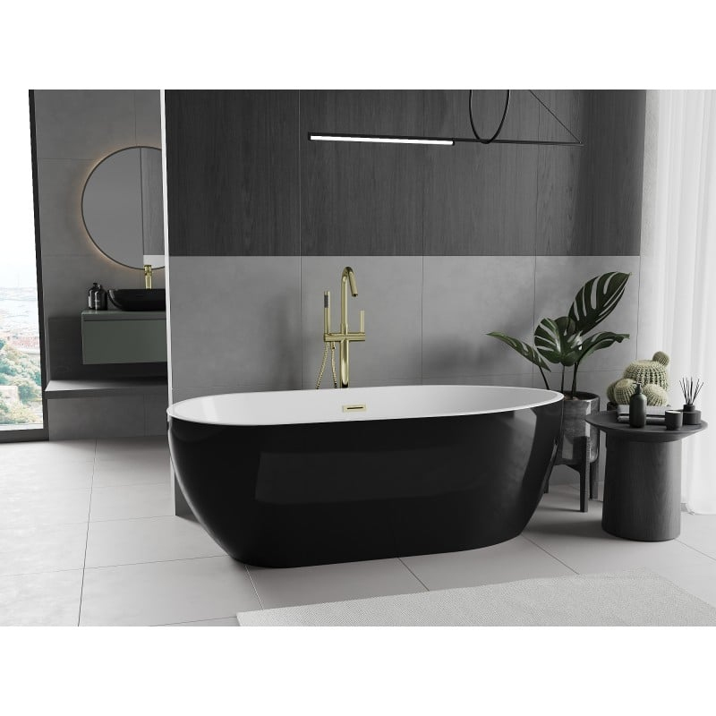 Voľne stojaca vaňa Mexen Eos 170 x 75 cm, biela/čierna, zlatý prepad - 52471707575-50