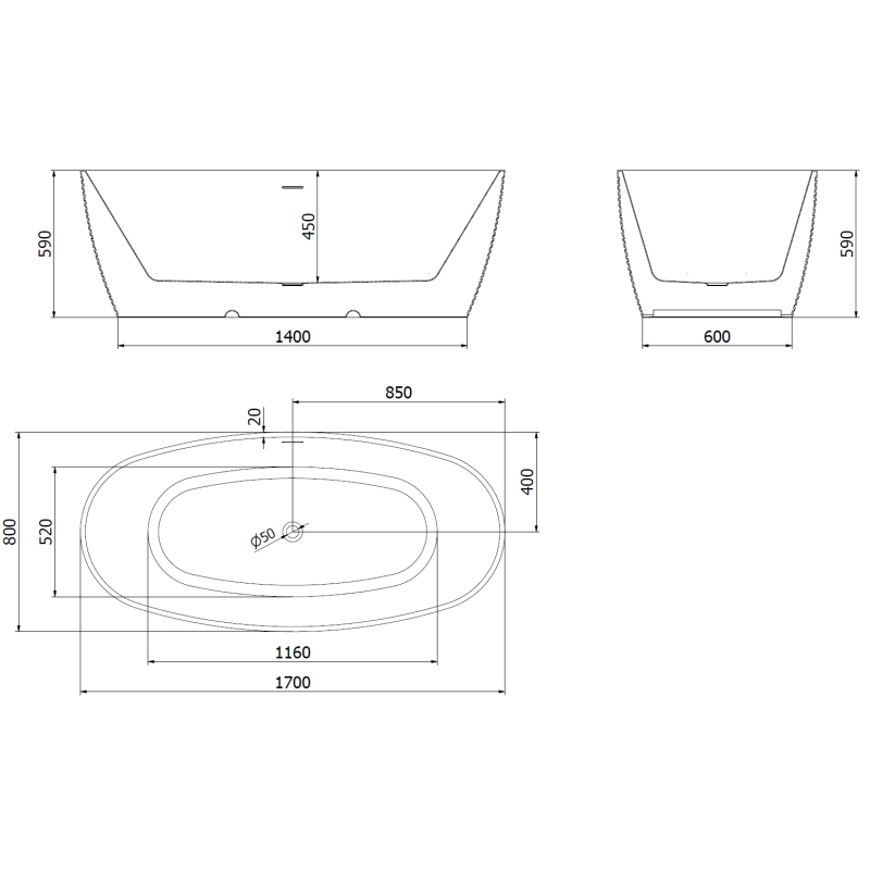 Špecifikácia produktu: Rozmery: 170 x 80 cm Výška: 59 cm Hĺbka: 45 cm Inštalácia: Voľne stojaci Materiál: Sanitárny akrylát Farba: Biela Povrchová úprava: Čierna Štruktúra: Vzor Otvor pre prepad: Áno Otvor pre batériu: Nie Sifón a zátka click-clack sú súčasťou balenia