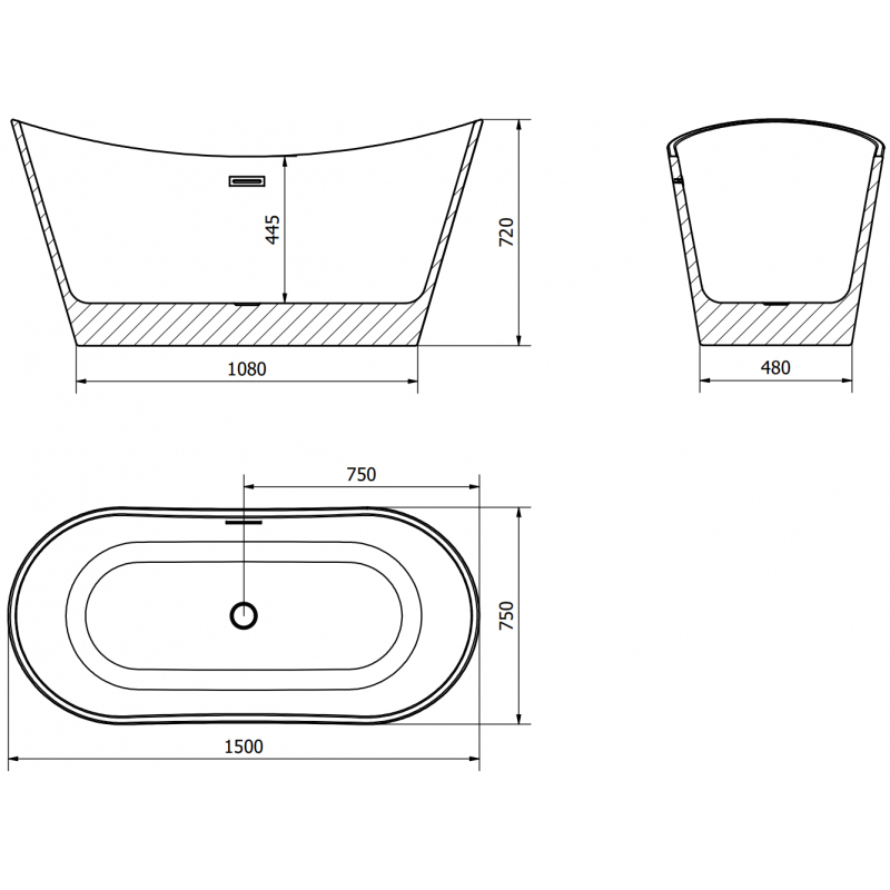 Špecifikácia produktu: Rozmery: 150 x 75 cm Výška: 72 cm Hĺbka: 44,5 cm Inštalácia: Voľne stojaci Materiál: Sanitárny akrylát Farba: Biela Povrchová úprava: Kartáčované zlato Otvor pre prepad: Áno Otvor pre batériu: Nie Sifón a zátka click-clack sú súčasťou dodávky