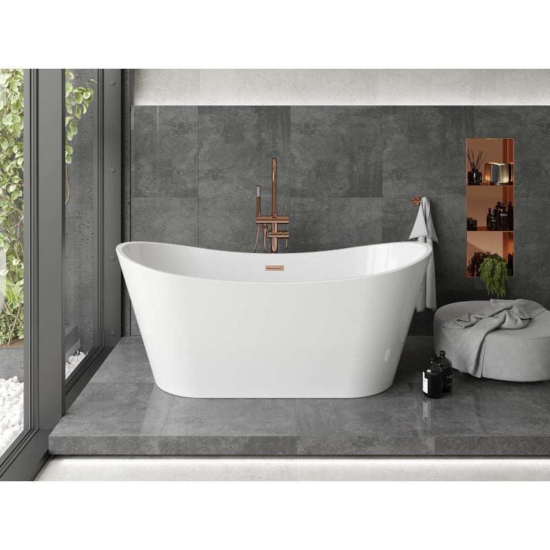 Voľne stojaca vaňa Mexen Montana 150 x 75 cm, biela, prepad z kartáčovanej medi - 52011507500-65