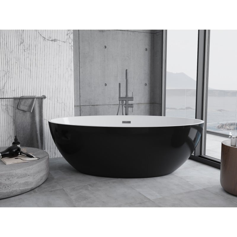 Voľne stojaca vaňa Mexen Nike 175 x 100 cm, biela/čierna, prepad vo farbe gun metal - 54071751075-95