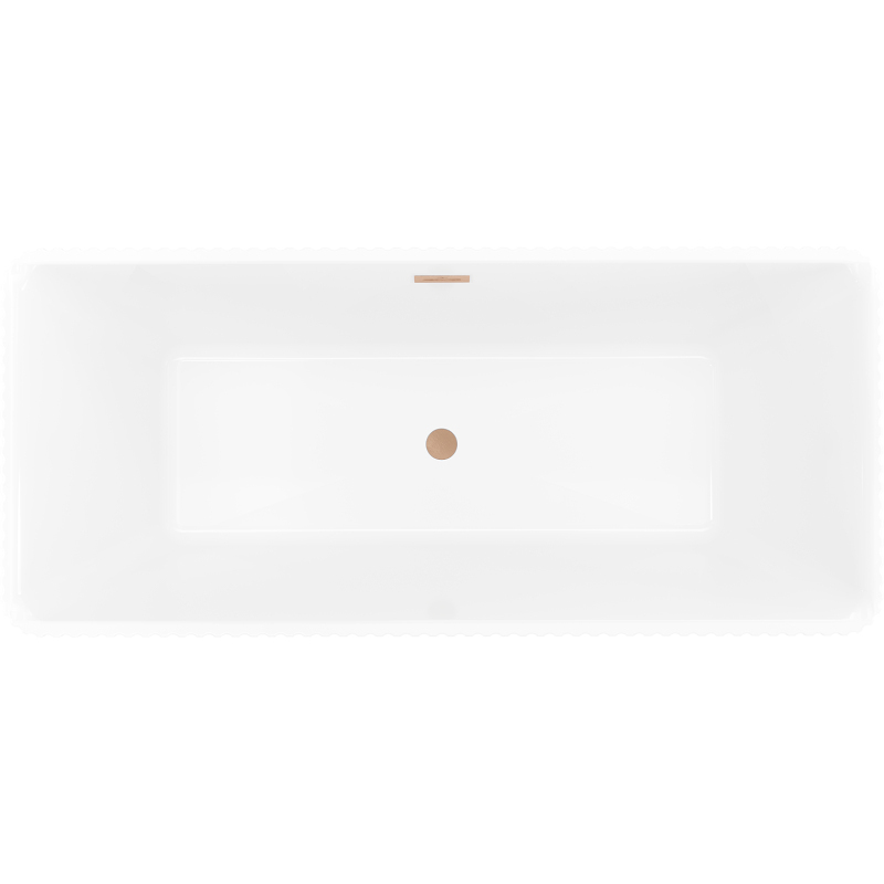 Špecifikácia produktu: Rozmery: 170 x 75 cm Výška: 58 cm Hĺbka: 45 cm Inštalácia: Voľne stojaci Materiál: Sanitárny akrylát Farba: Biela / Čierna Povrchová úprava: Kartáčovaná meď Konštrukcia: Drážkovaná Otvor pre prepad: Áno Otvor pre batériu: Ne Sifón batériu, batériu a UV žiarenie