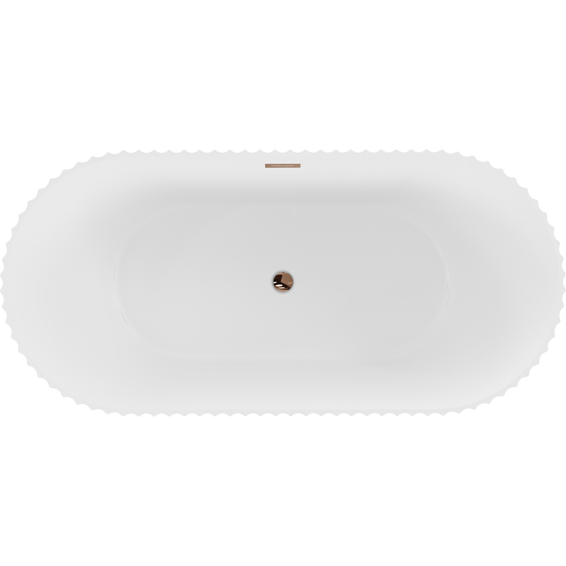Špecifikácia produktu: Rozmer: 170 x 80 cm Výška: 58 cm Hĺbka: 45,5 cm Inštalácia: Voľne stojaci Materiál: Sanitárny akrylát Farba: Matná biela Povrchová úprava: Ružové zlato Štruktúra: Drážkovaná Otvor pre prepad: Áno Otvor pre batériu: Nie Sifón a zátka batériu a UV žiarenie