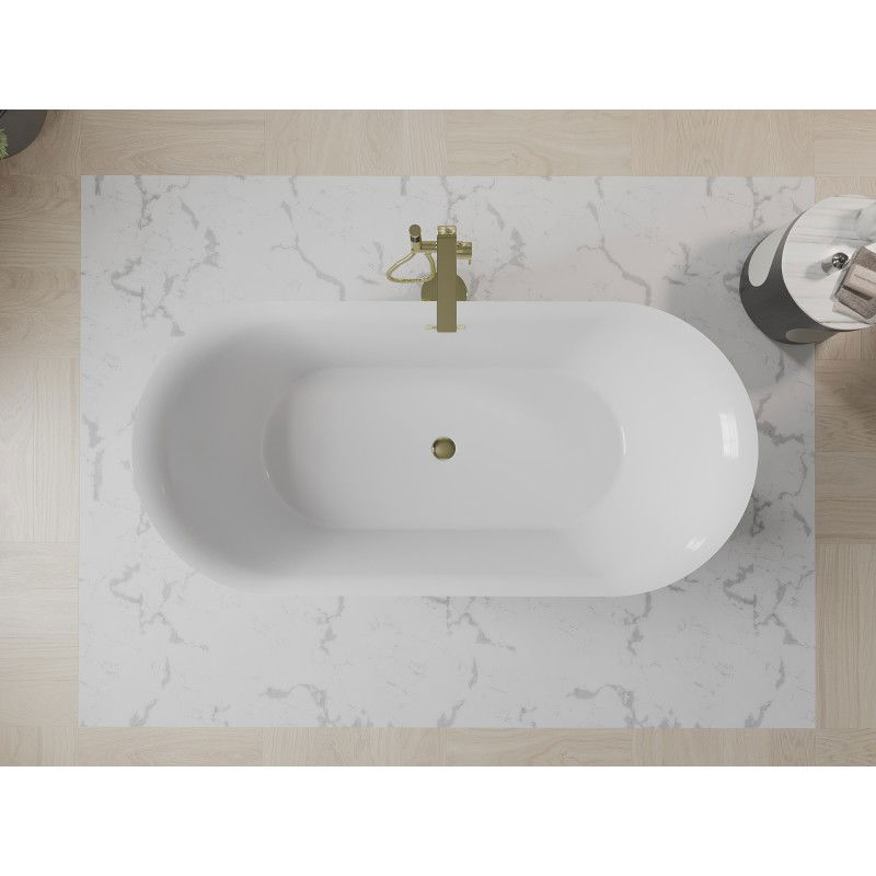 Špecifikácia produktu: Rozmery: 170 x 80 cm Výška: 58 cm Hĺbka: 45 cm Inštalácia: Voľne stojaci Materiál: Sanitárny akrylát Farba: Biela/Čierna Povrchová úprava: Zlatá Otvor pre prepad: Áno Otvor pre batériu: Nie Sifón a zátka click-clack sú súčasťou balenia