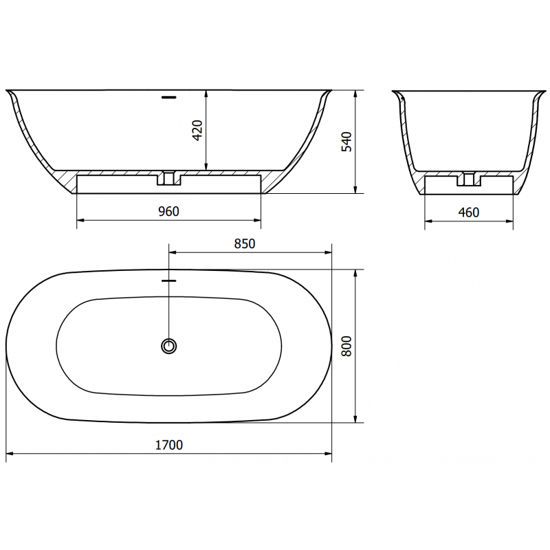 Technické údaje: Rozmery: 170 x 80 cm Výška: 54 cm Hĺbka: 42 cm Inštalácia: Voľne stojaci Materiál: Konglomerát Farba: Matný betón Povrchová úprava: Matný betón Otvor pre prepad: Áno Otvor pre batériu: Nie Sifón a zátka click-clack sú súčasťou dodávky Odolnosť voči