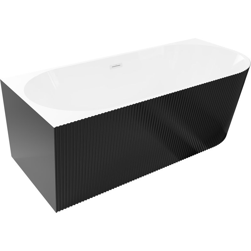Voľne stojaca vaňa Mexen Silo do ľavého rohu, drážkovaná, 150 x 75 cm, biela/čierna, biely prepad - 52891507575L-20
