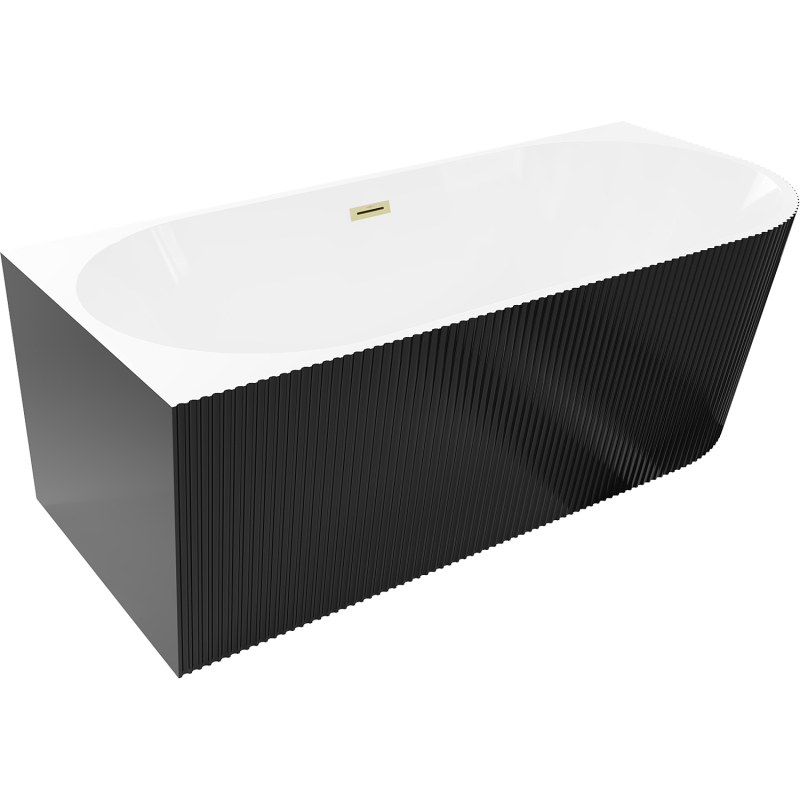 Voľne stojaca vaňa Mexen Silo do ľavého rohu, drážkovaná, 150 x 75 cm, biela/čierna, prepad kartáčovaný zlatý - 52891507575L-55