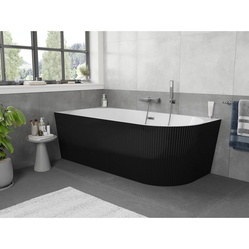 Špecifikácia produktu: Rozmery: 150 x 75 cm Výška: 58 cm Hĺbka: 42,5 cm Montáž: Rohová, Ľavá Materiál: Sanitárny akrylát Farba: Biela / Čierna Povrchová úprava: Strieborná Konštrukcia: Drážkovaná Otvor pre prepad: Áno Otvor pre batériu: Nie Otvor pre batériu: Nie batériu, batériu a UV žiarenie