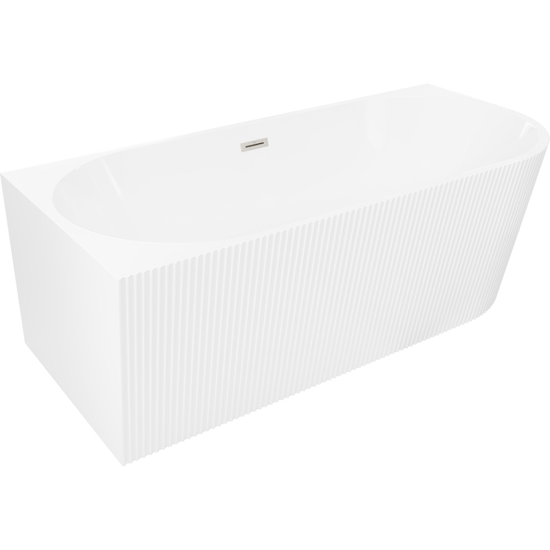 Voľne stojaca vaňa Mexen Silo do ľavého rohu, drážkovaná, 150 x 75 cm, biela, prepad kartáčovaný nikel - 52891507500L-97
