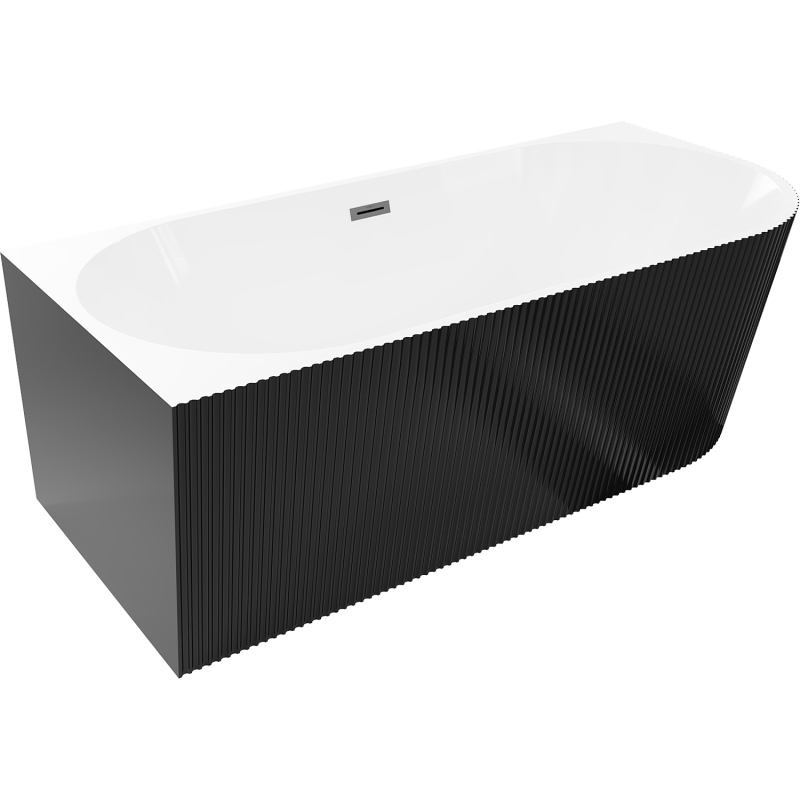 Voľne stojaca vaňa Mexen Silo do ľavého rohu, drážkovaná, 170 x 80 cm, biela/čierna, kartáčovaný prepad vo farbe pištole gray - 52891708075L-66