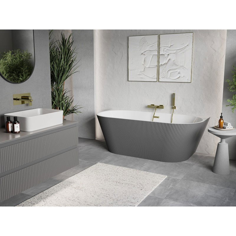 Voľne stojaca závesná vaňa Mexen Oris s drážkovaným prepadom 170 x 80 cm, biela/sivá, prepad kartáčovaný zlatý - 52871708062-55