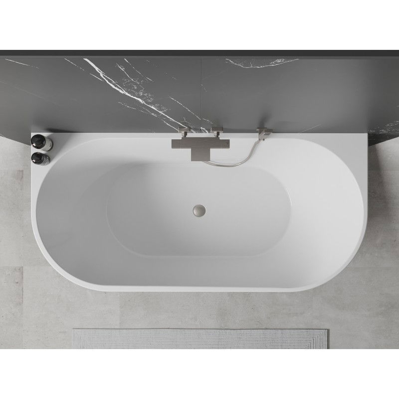 Voľne stojaca závesná vaňa Mexen Oval 160 x 80 cm, biela / čierna, prepad kartáčovaný nikel - 52671608075-97