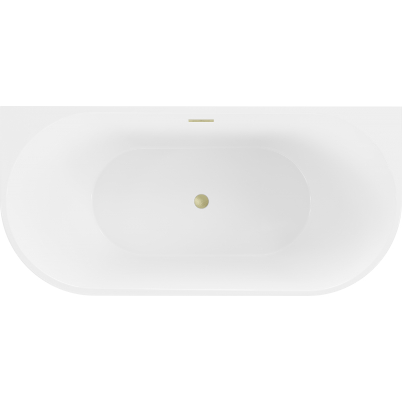 Voľne stojaca závesná vaňa Mexen Oval 160 x 80 cm, biela, prepad kartáčovaný zlatý - 52671608000-55