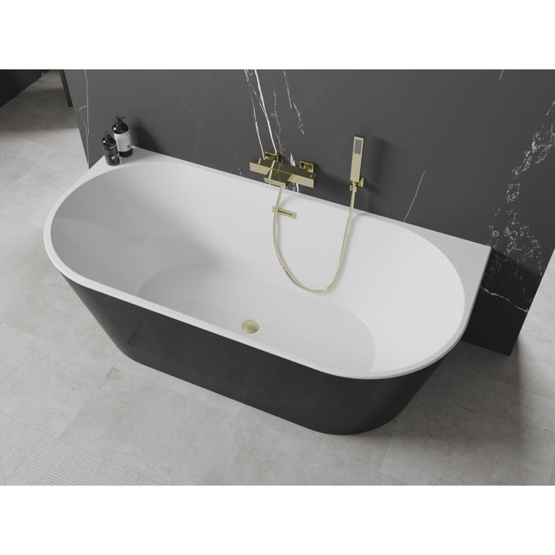 Voľne stojaca závesná vaňa Mexen Oval 170 x 80 cm, biela / čierna, prepad kartáčovaný zlatý - 52671708075-55