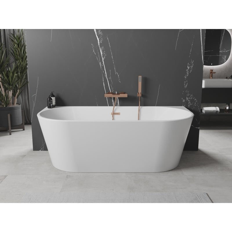Voľne stojaca závesná vaňa Mexen Oval 170 x 80 cm, biela, prepad z kartáčovanej medi - 52671708000-65