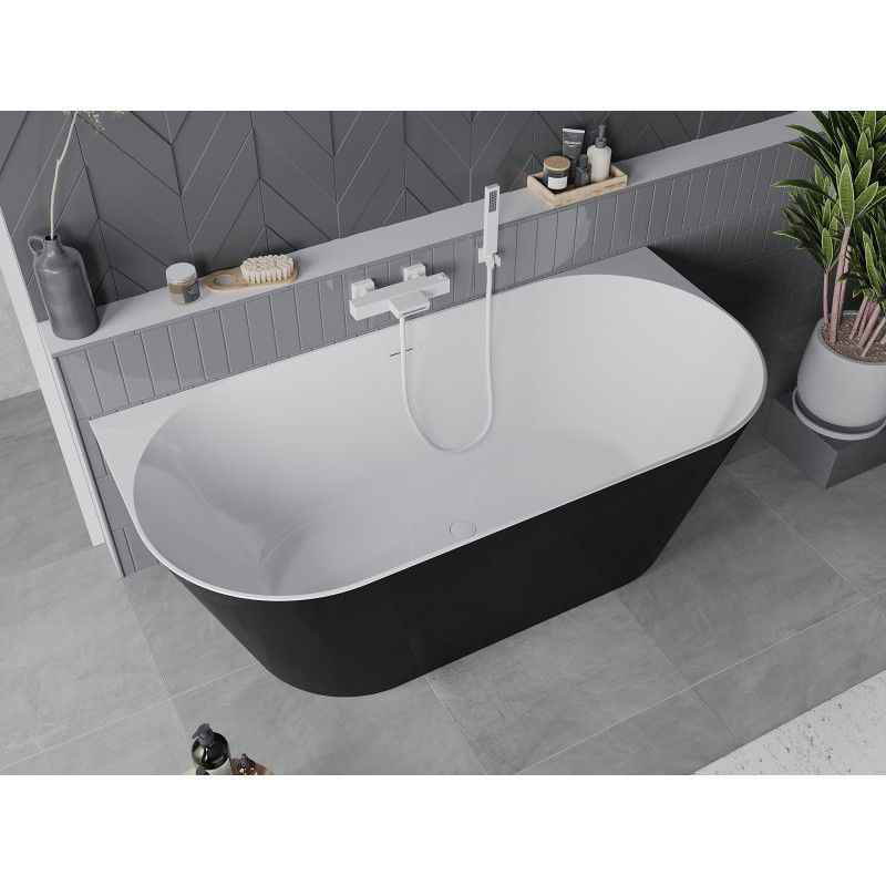 Voľne stojaca závesná vaňa Mexen Oval Slim 170 x 80 cm, biela/čierna, biely prepad - 52661708075-20