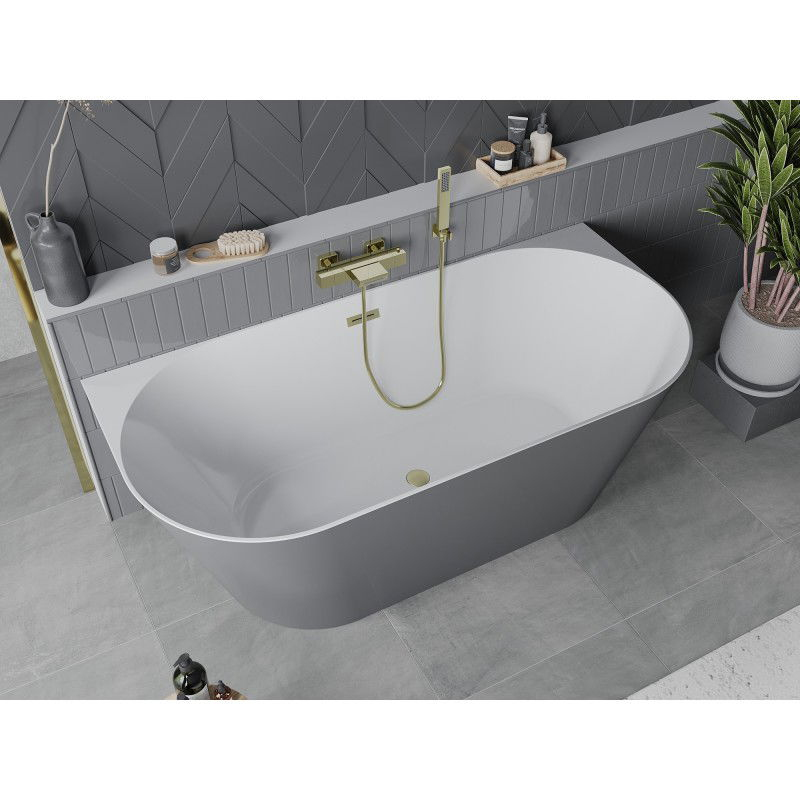 Voľne stojaca závesná vaňa Mexen Oval Slim 170 x 80 cm, biela/sivá, prepad kartáčovaný zlatý - 52661708062-55