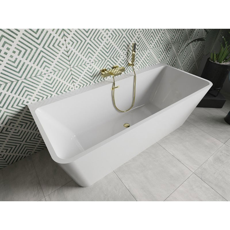 Voľne stojaca závesná vaňa Mexen Volta 150 x 75 cm, biela, zlatý prepad - 51131507500-50