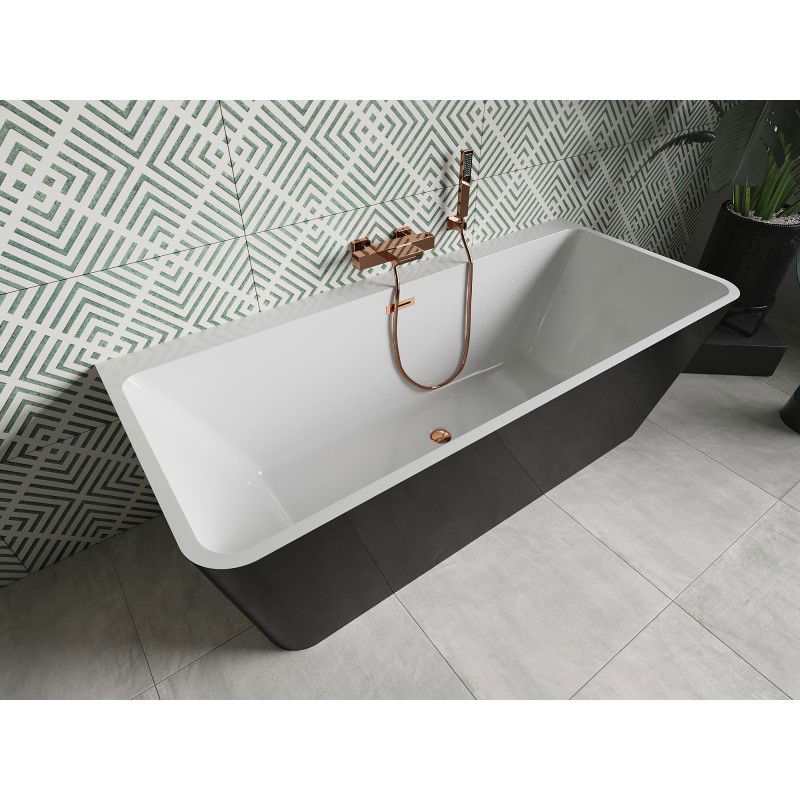 Voľne stojaca závesná vaňa Mexen Volta 170 x 75 cm, biela/čierna, ružovo-zlatý prepad - 51131707575-60