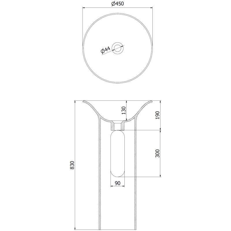 Specifikace produktu: Rozměr: 45x45x83 cm Hloubka: 13 cm Typ: Volně stojící Barva: Matná bílá Materiál: Konglomerát Otvor pro přepad: Ne Otvor pro baterii: Ne