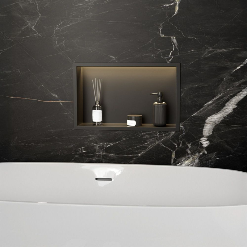 Vstavaná kúpeľňová polica s LED osvetlením je funkčné a estetické riešenie, ktoré sa skvele hodí do sprchy, nad vaňu alebo do inej časti kúpeľne. Vyrobená z vysoko kvalitnej nerezovej ocele Aisi 304, je odolná voči vlhkosti, korózii a intenzívnemu používaniu, a tak si zachová svoj vzhľad po mnoho rokov. Integrovaný Led opasok s výkonom 12 W a farbou svetla 3000K vyžaruje teplé, príjemné svetlo, ktoré dodáva interiéru atmosféru a zároveň zvyšuje pohodlie každodenného používania. Vstavaná montáž vytvára minimalistický a moderný efekt a polica poskytuje pohodlné miesto na uloženie kozmetiky a kúpeľňových doplnkov. Ide o praktický prvok kúpeľňového vybavenia, ktorý spája moderný dizajn, odolnosť a dodatočné osvetlenie, ktoré podčiarkuje eleganciu aranžmánov.