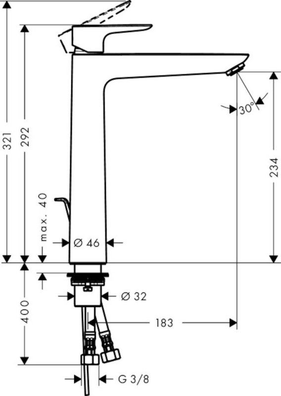 Vysoká umývadlová batéria Hansgrohe Talis E s výpustou chróm 71716000