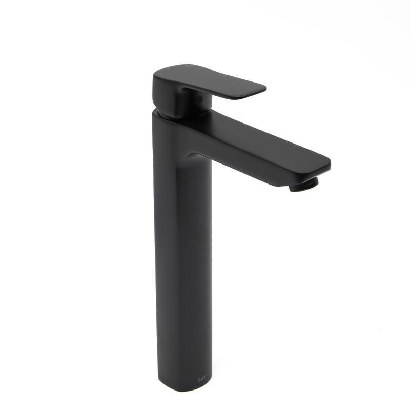 Vysoká umývadlová batéria SAT Cube Way bez výpuste čierna matná CU285C